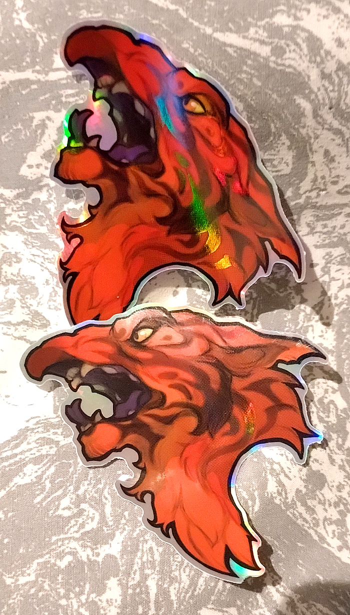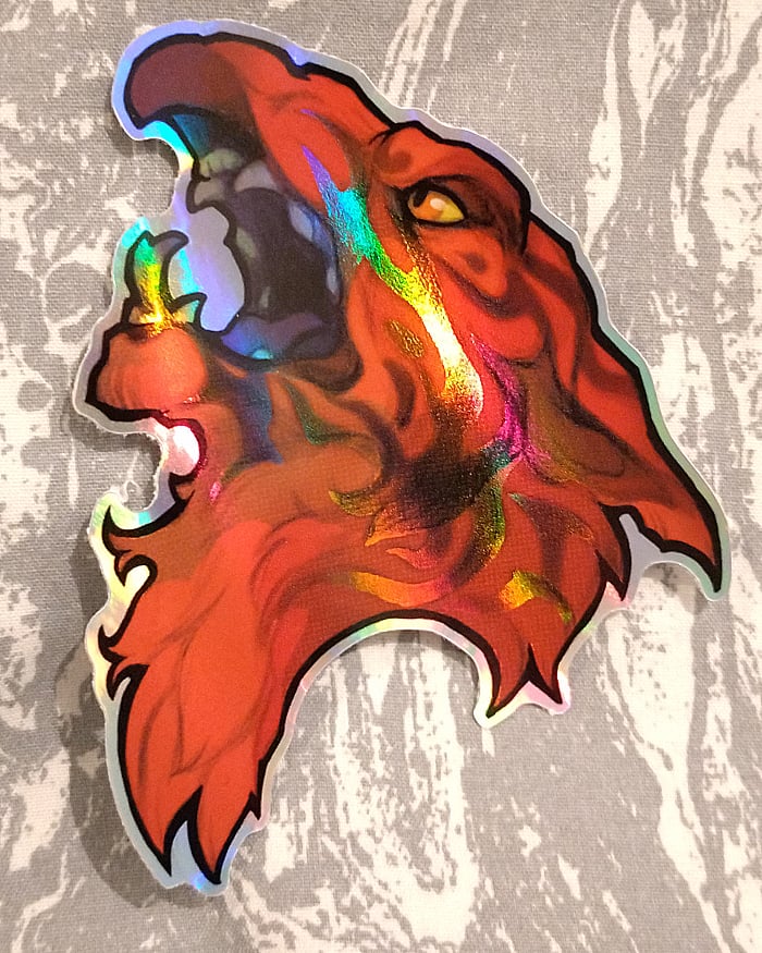 This design is just over 3 inches tall, with spot holo foil for a colorful burst in light. Stickers are sealed vinyl safe for indoor or outdoor use.