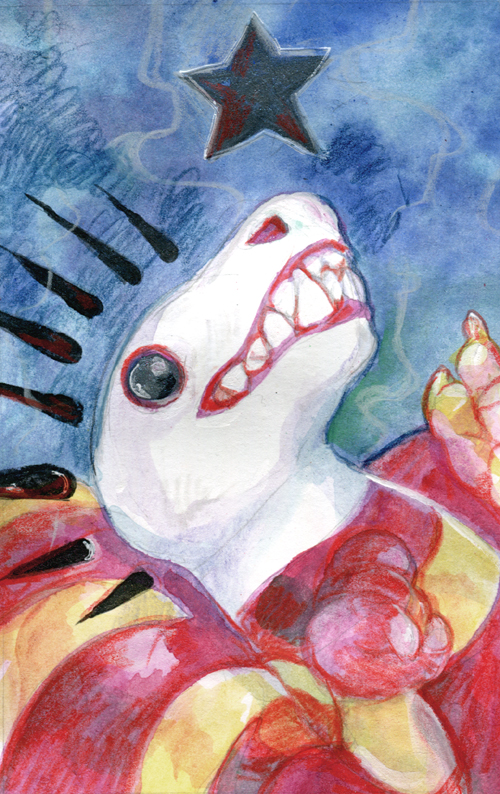 4.5 by 6.5 inch original watercolor set in a black mat with backer board sized at a told of 8 x 10 inches. Ready to frame and hang.