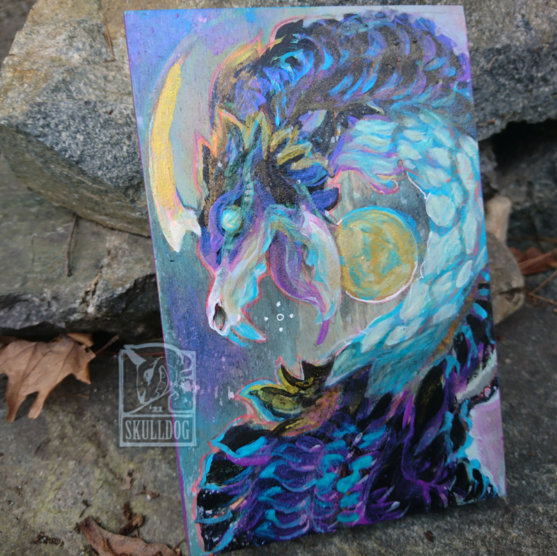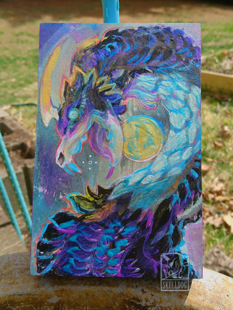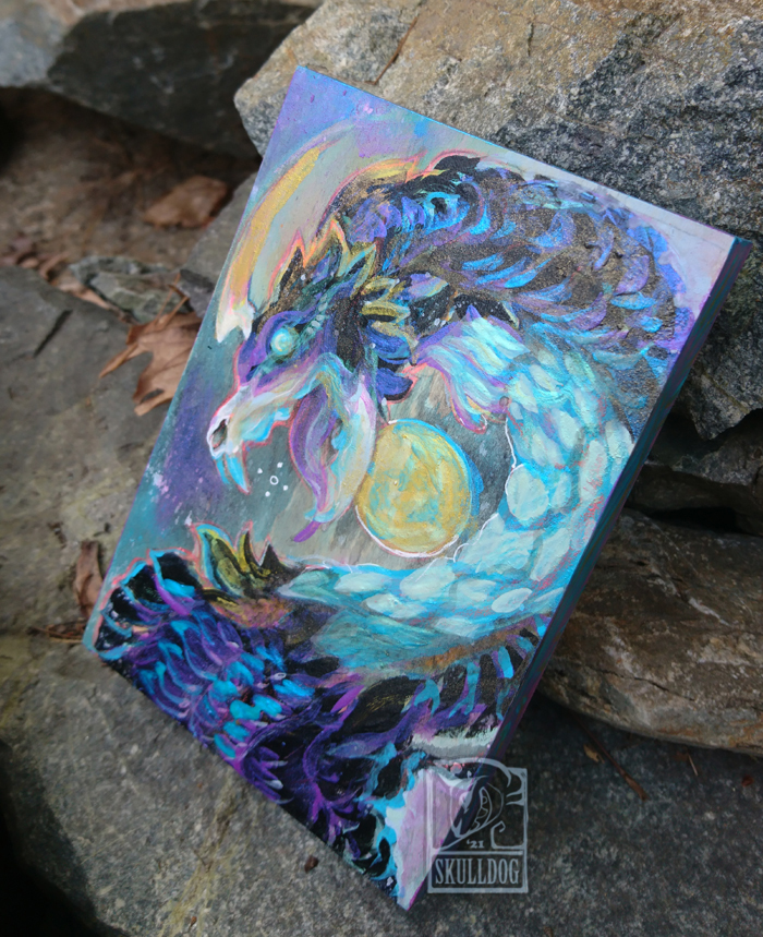 4 inches by 6 inches with just under an inch depth. Comes with a metal hanger ready to show off.