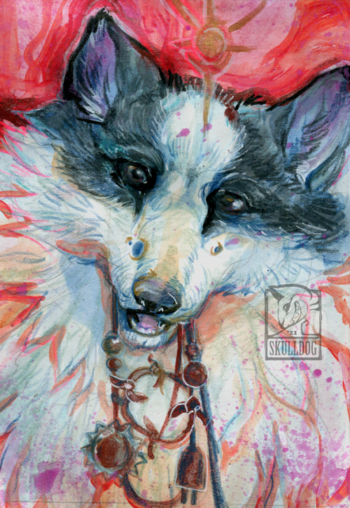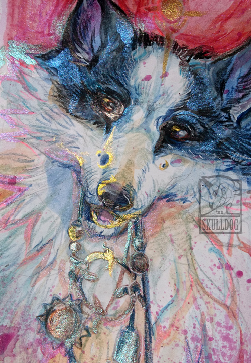 One of a kind original artwork done in watercolor mixed media, including metallic accents.