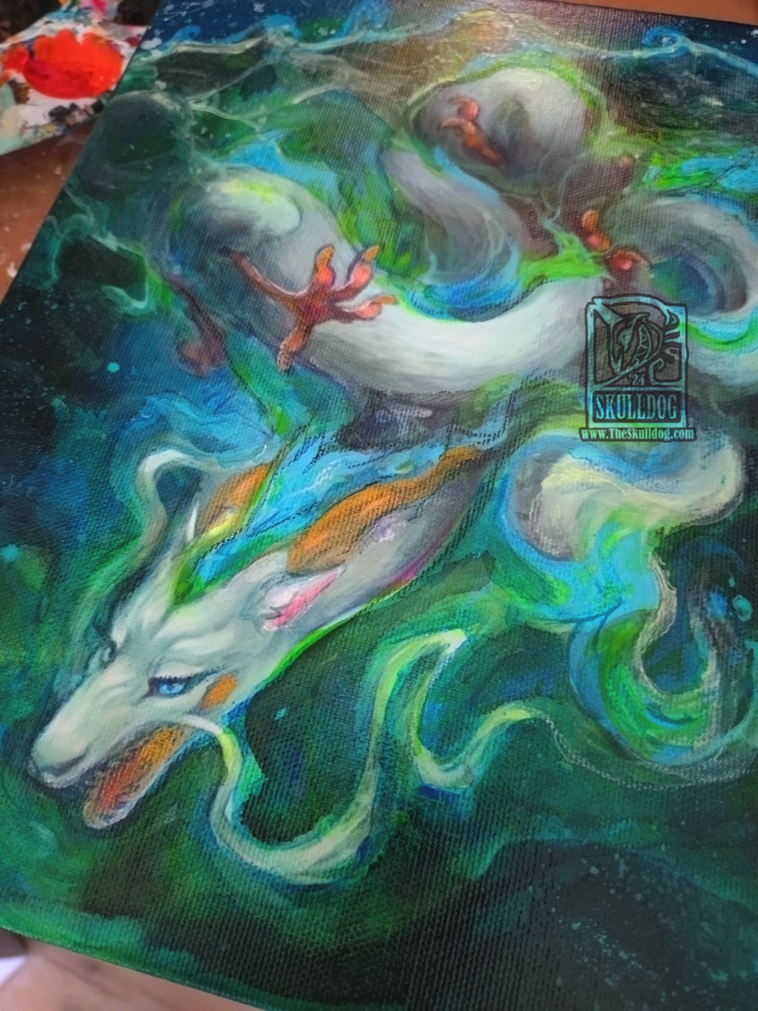 Original one of a kind digital print on canvas with acrylic embellishments.