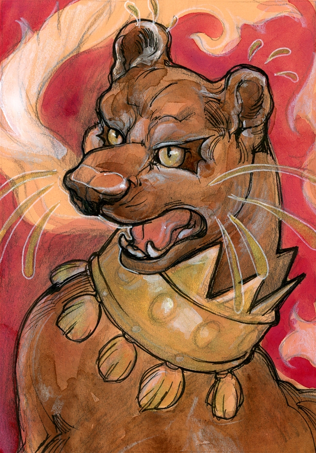 One of a kind original artwork done in ink with watercolor and metallic pigment accents.