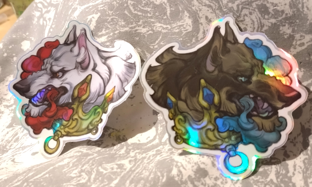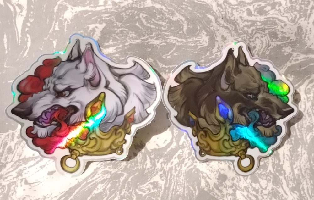 Each design is just over 3 inches wide and tall, with spot holo foil for a colorful burst in light. Stickers are sealed vinyl safe for indoor or outdoor use.