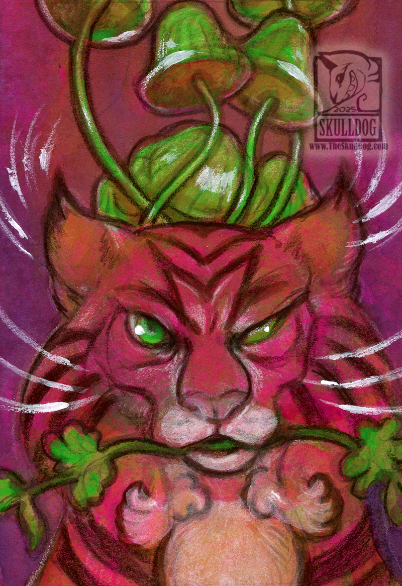 One of a kind original artwork done in mixed media with acrylic on toned paper, and includes UV reactive paints across the whole image.